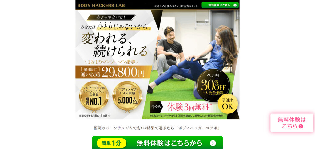 ボディハッカーズラボ 久留米店|料金・口コミ・特徴まとめ