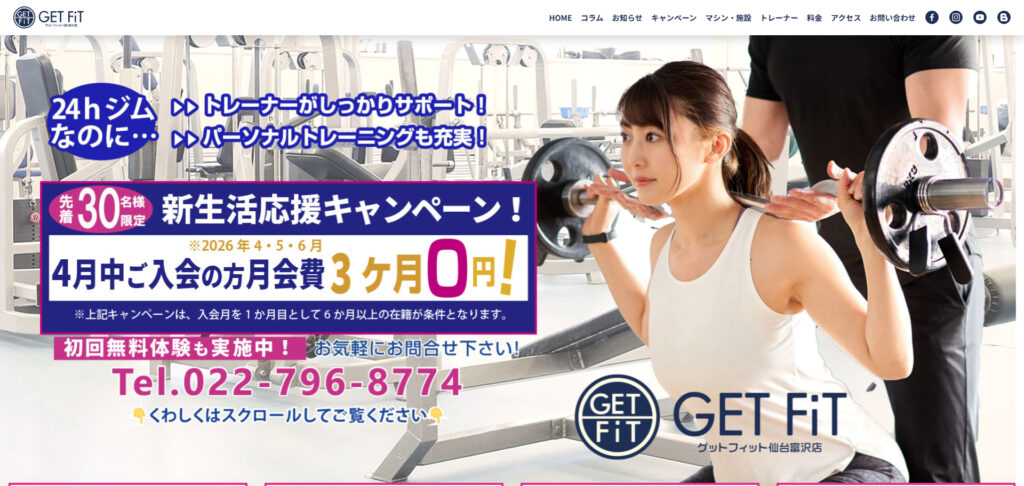 GET FiT(ゲットフィット)仙台富沢|料金・口コミ・特徴まとめ