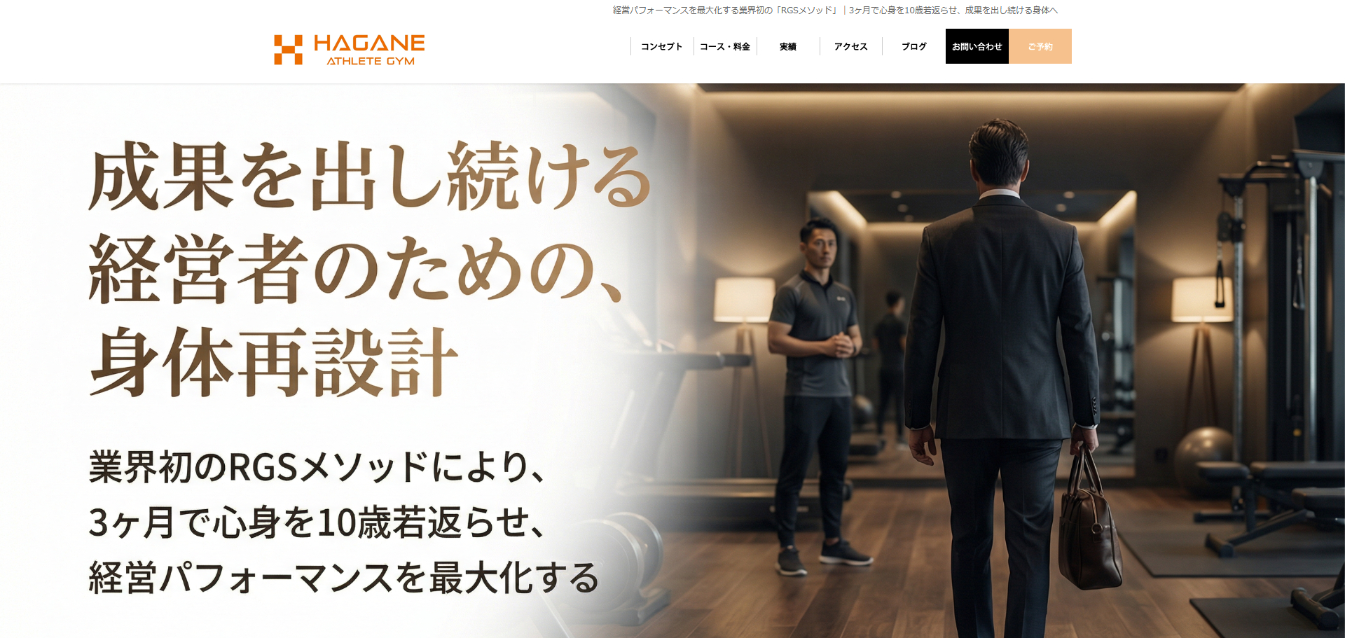 HAGANE ATHLETE GYM(ハガネアスリートジム)は「遺伝子検査×RGSメソッドで、経営者・ビジネス層の心身を科学的に再設計するパーソナルジム」です。