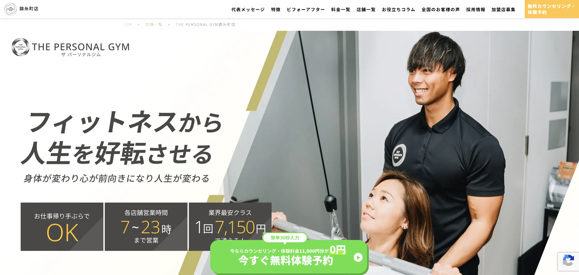 | 店舗 | 1店舗(錦糸町)/THE PERSONAL GYM全国展開チェーン |